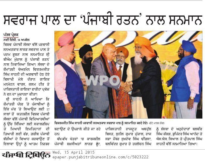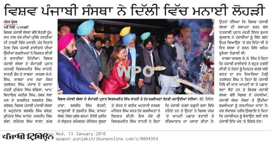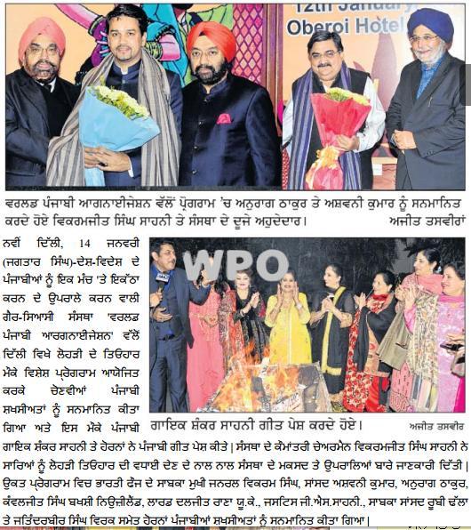 Recognition of Punjanbi Achievers & Lohri Celebrations by World Punjabi Organisation (WPO) Date : January 12, 2015 The Ball Room, The Oberoi Hotel, New Delhi World Punjabi Organisation (WPO) is pleased to inform you that we are celebrating WPO Gala Lohri celebrations together with cultural evening and conferment of ‘Awards […]